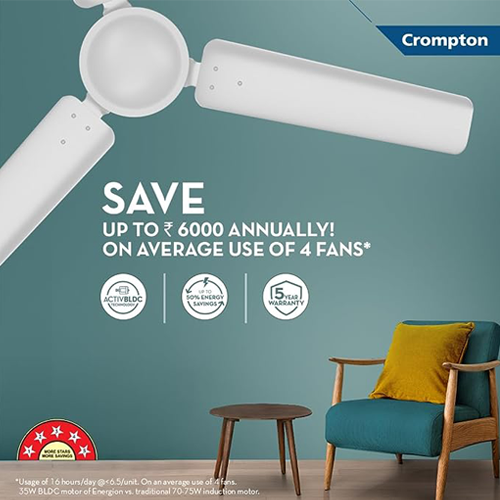 - Crompton's most energy efficient 5-Star rated remote-controlled fan with ActivBLDC technology