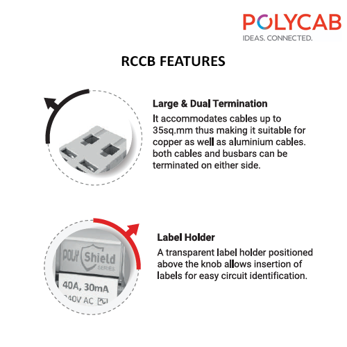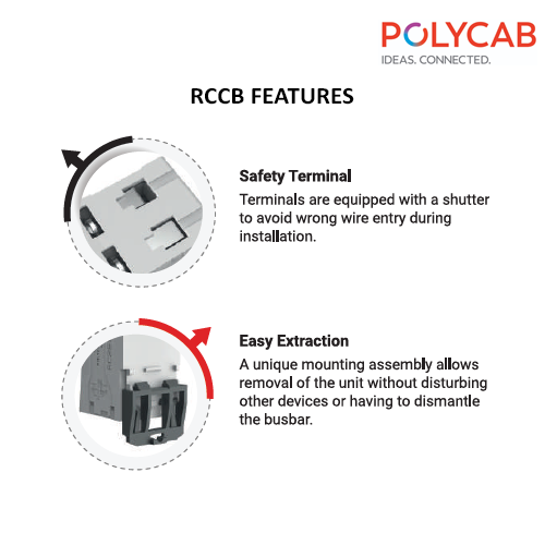 Polyshield’s Residual Current circuit breaker for earth leakage protection. It is to be used in association with miniature circuit breakers, its function is to detect earth leakage current and open the connected circuit to protect people and equipment. These devices are designed to meet the Earth Leakage Protection Standards of the IEC: IEC/EN 61008-1,IS-12640-1.